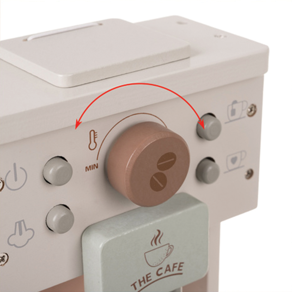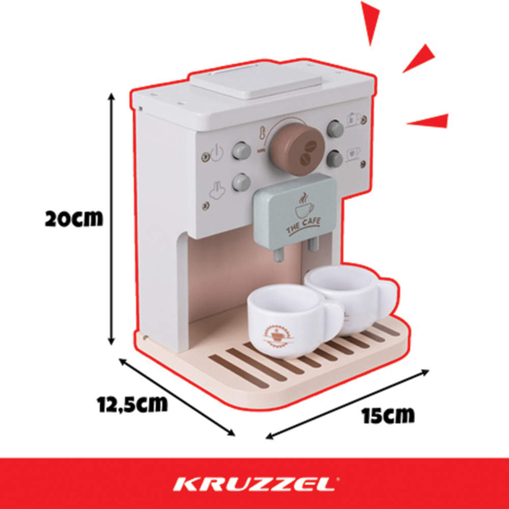 Proměňte dětský pokoj v útulnou kavárnu s tímto stylovým dřevěným kávovarem. 8dílná sada v moderních tlumených barvách obsahuje vše, co malý barista potřebuje - od kávových kapslí až po šálky a mléko. Tato edukační hračka z kvalitního dřeva rozvíjí jemnou motoriku, fantazii a sociální dovednosti. Je to ideální a bezpečný dárek, který dětem přináší radost z dospěláckých rituálů v hravém podání.