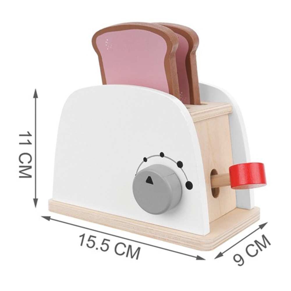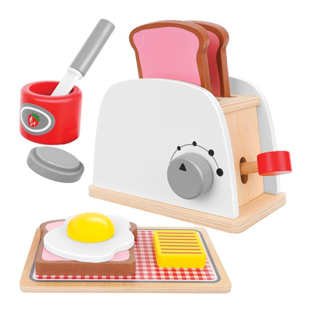 Dřevěný toustovač značky s bohatým příslušenstvím je kouzelnou vzdělávací hračkou, která dětem umožňuje autentický zážitek z přípravy ranní snídaně. Sada obsahuje nejen precizně zpracovaný toustovač s funkční páčkou a otočným regulátorem výkonu, ale také dva plátky toastu, sázené vejce, sýr, džem, nůž a praktický tác na servírování.