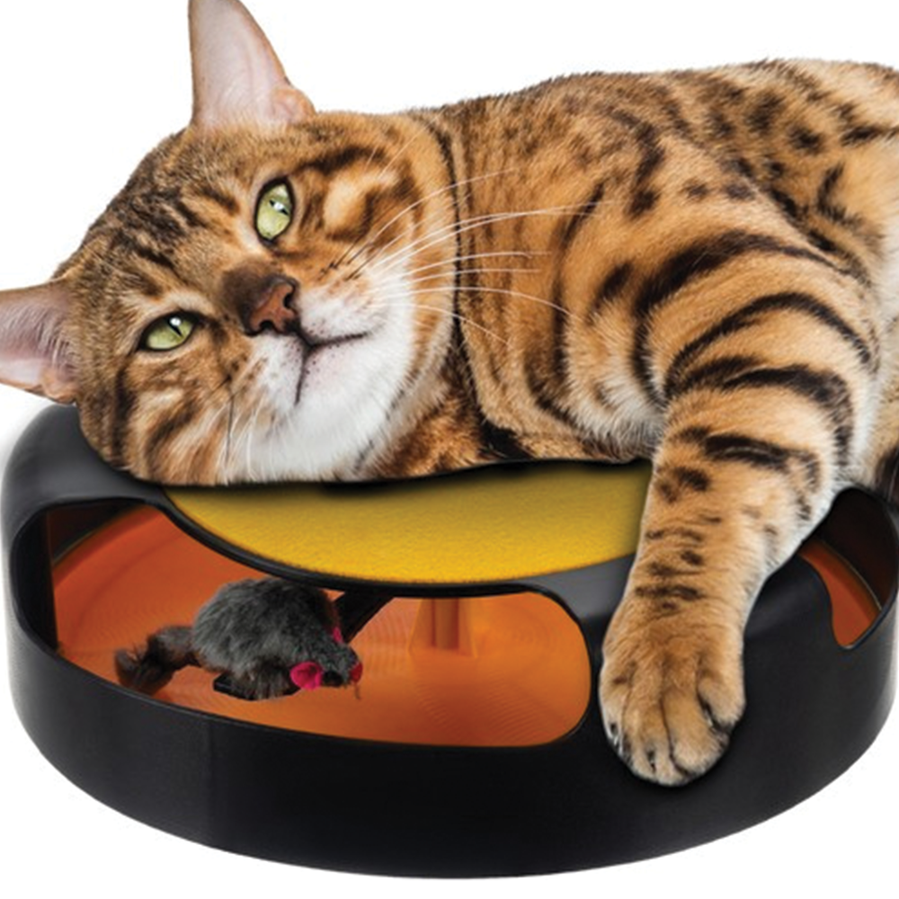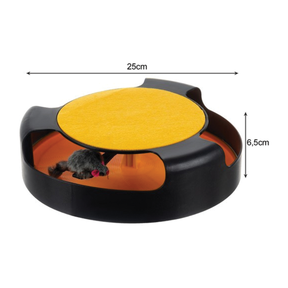Zabavte svou kočku interaktivní hračkou, která probudí její přirozené lovecké instinkty. Kolečko s rotující myší nabízí hodiny aktivní zábavy i v době vaší nepřítomnosti. Díky třem velkým otvorům je hračka vhodná pro kočky všech velikostí. Horní část navíc slouží jako praktické plstěné škrabadlo, které pomáhá chránit váš nábytek. Protiskluzové podložky zajistí stabilitu i při té nejdivočejší hře.