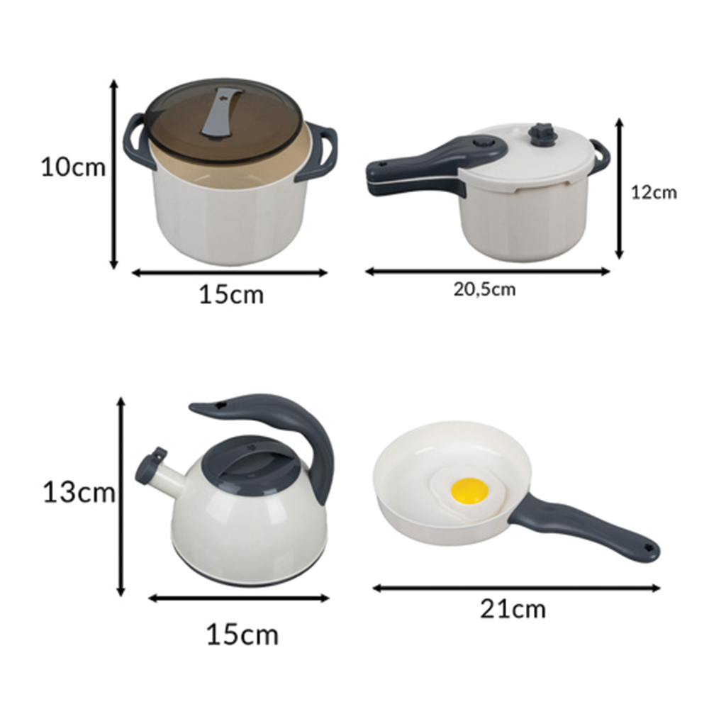 Všestrannost a snadná údržba: Díky odolnému plastovému provedení je sada vhodná nejen pro domácí dětské kuchyňky, ale i pro náročný provoz v mateřských školách. Materiál je snadno omyvatelný, což zaručuje hygienickou čistotu i po "velkém vaření".