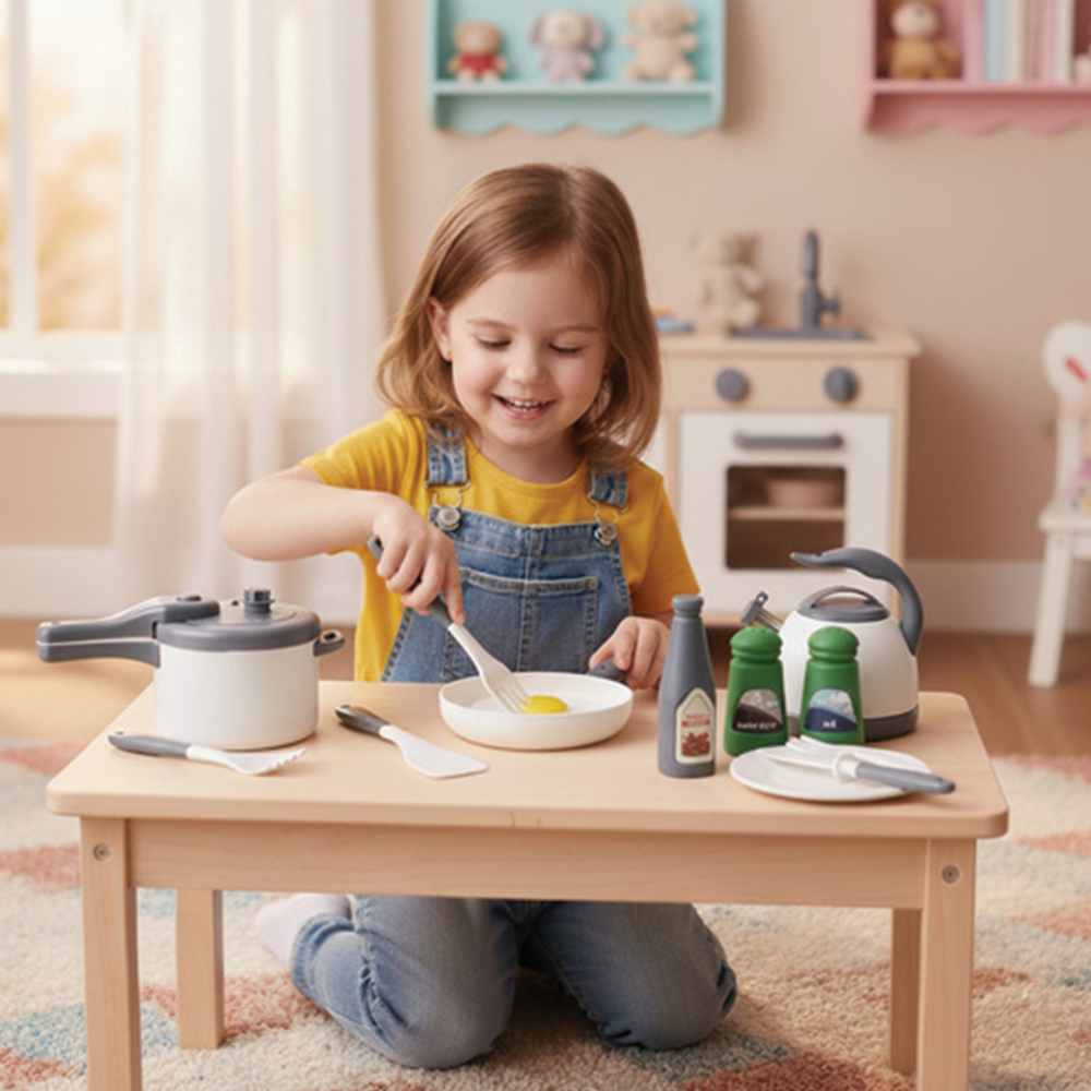 Škola hrou a sociální učení: Hra na role (vaření, servírování, stolování) pomáhá dětem pochopit každodenní domácí procesy. Při hře ve skupině se navíc učí spolupráci, dělení se o úkoly a komunikaci s ostatními "hosty" u stolu.