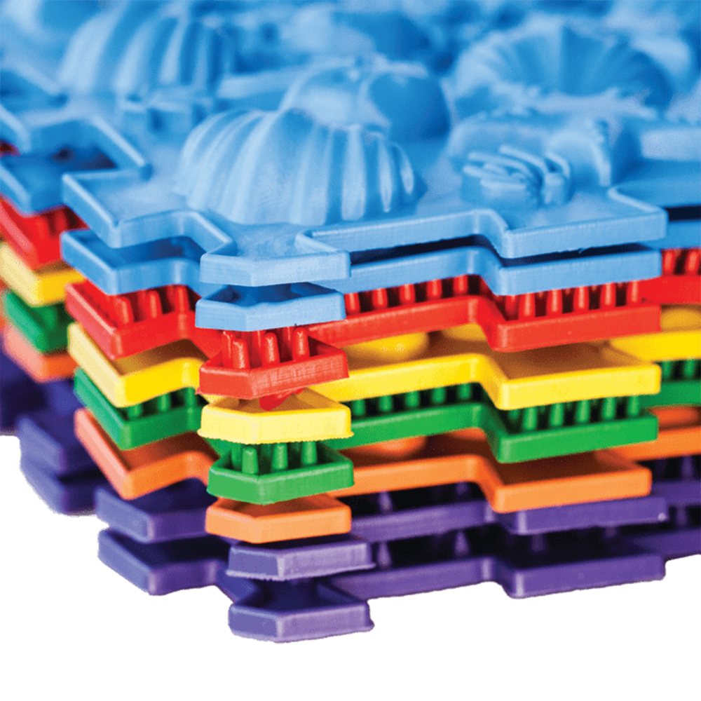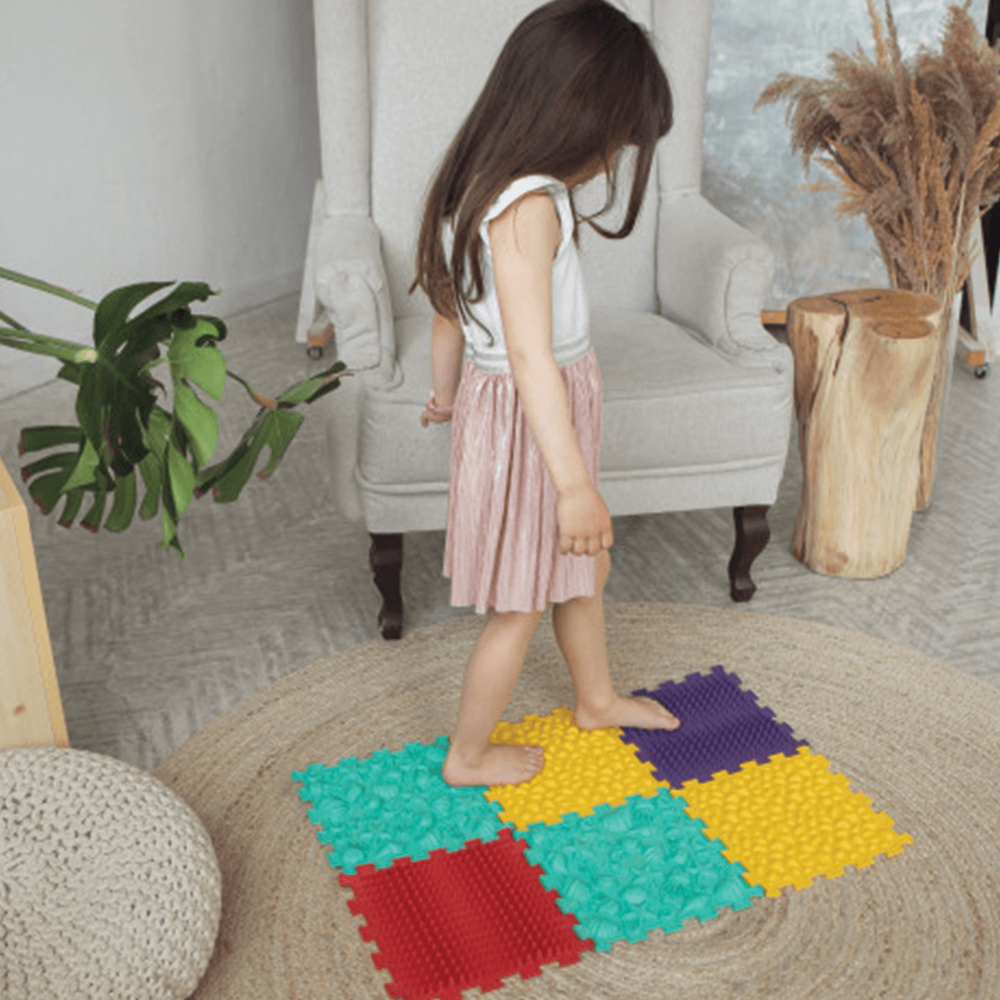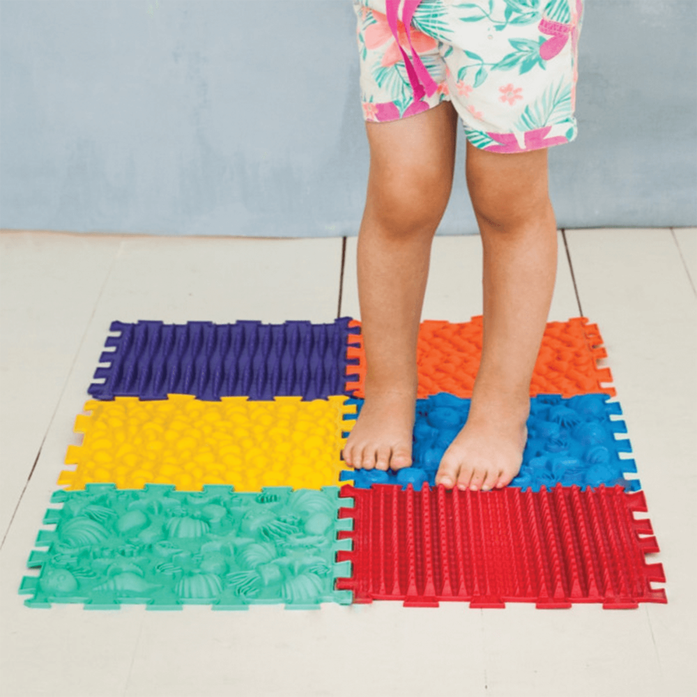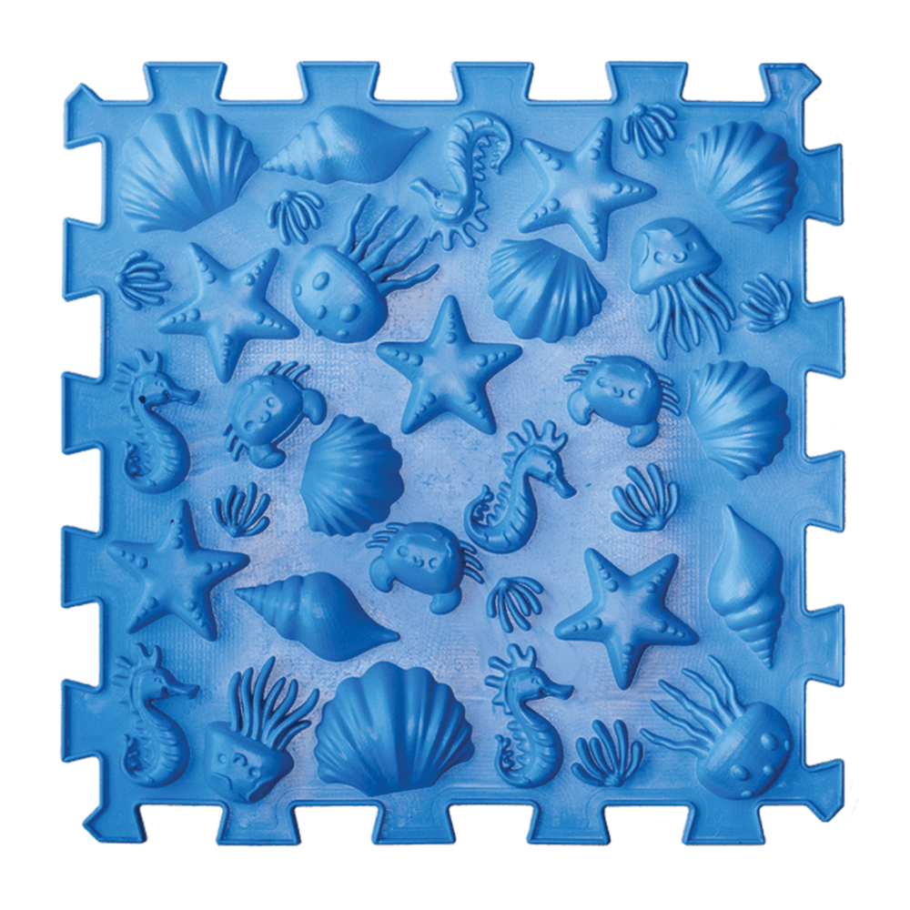 Tato kompaktní masážní podložka s námořním motivem obsahuje 6 puzzle modulů pro efektivní procvičení chodidel dětí i dospělých. Mix různých struktur stimuluje reflexní zóny, posiluje klenbu a pomáhá v prevenci plochých nohou i únavy po dlouhém stání. Vyrobeno z bezpečného hypoalergenního PVC, které je odolné a snadno omyvatelné. Ideální pro první krůčky, domácí rehabilitaci i trénink zvířat.