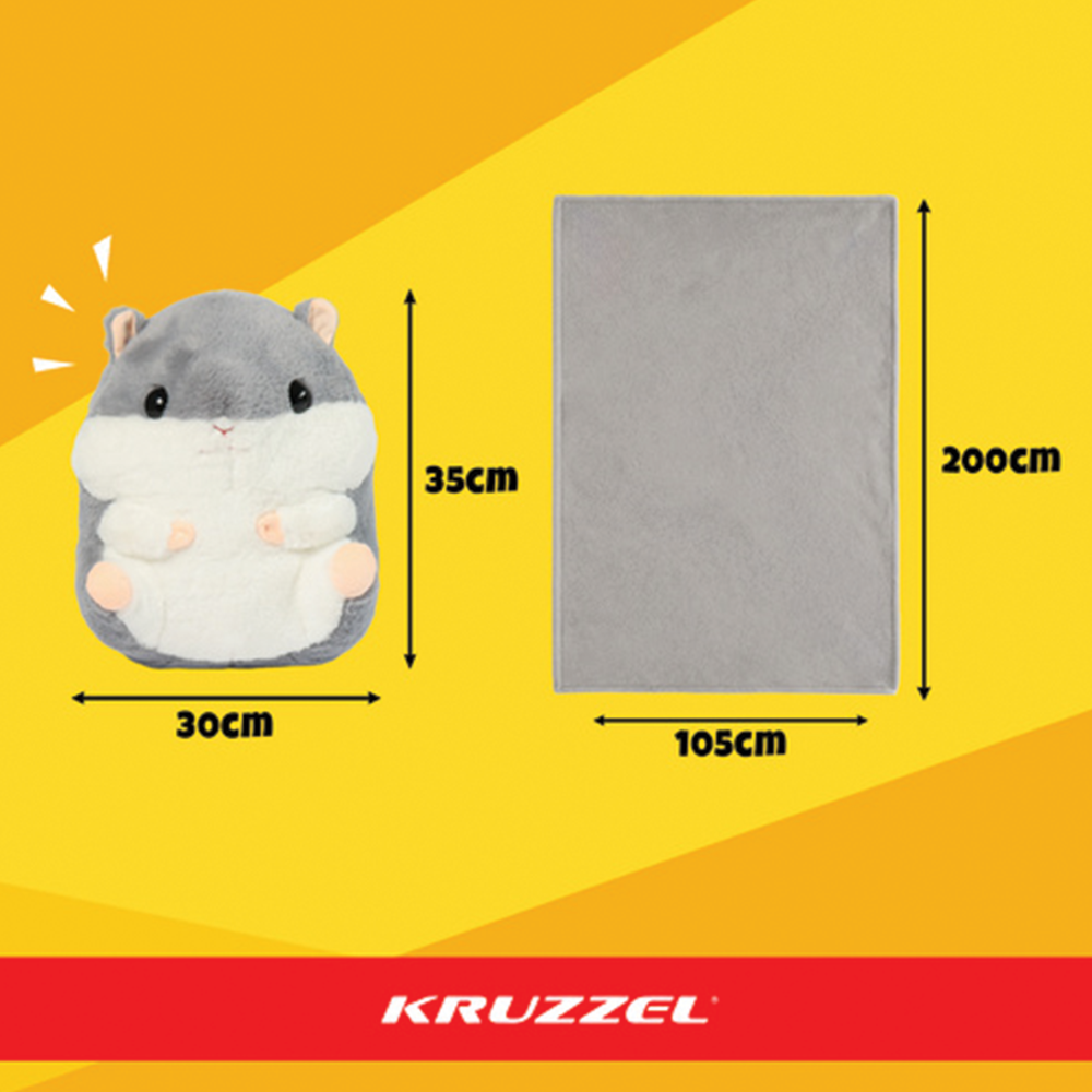 Tento roztomilý plyšový křeček v šedé barvě je geniálním spojením hračky, polštáře a deky v jednom. V jeho bříšku se ukrývá velká a hřejivá deka o rozměru 105 x 200 cm, kterou lze snadno vyjmout pomocí zipu. Vyroben z prémiového materiálu, je ideálním společníkem na cesty, do školky i pro domácí lenošení, přičemž splňuje všechny evropské bezpečnostní normy.