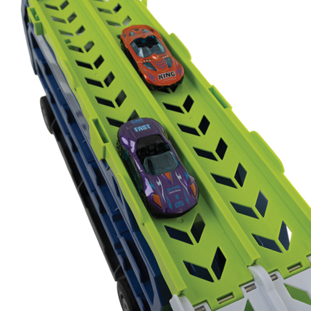 Multifunkční provedení 3 v 1: Hračka zastane roli velkého nákladního auta, úložné garáže pro celou sbírku i rozkládací závodní skluzavky. Tato variabilita zaručuje, že zábava hned tak neomrzí a nabízí stále nové scénáře pro hru.