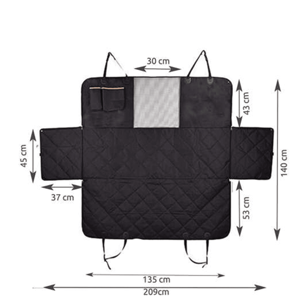 Voděodolná a protiskluzová ochranná rohož do auta chrání zadní sedadla před nečistotami, chlupy i vlhkostí při přepravě domácích mazlíčků. Nabízí snadnou instalaci, boční krytí na zip a bezpečnostní síť pro pohodlné cestování. V přední části se nachází síťované okno, které zabraňuje vstupu zvířete dopředu a zároveň umožňuje vizuální kontakt.