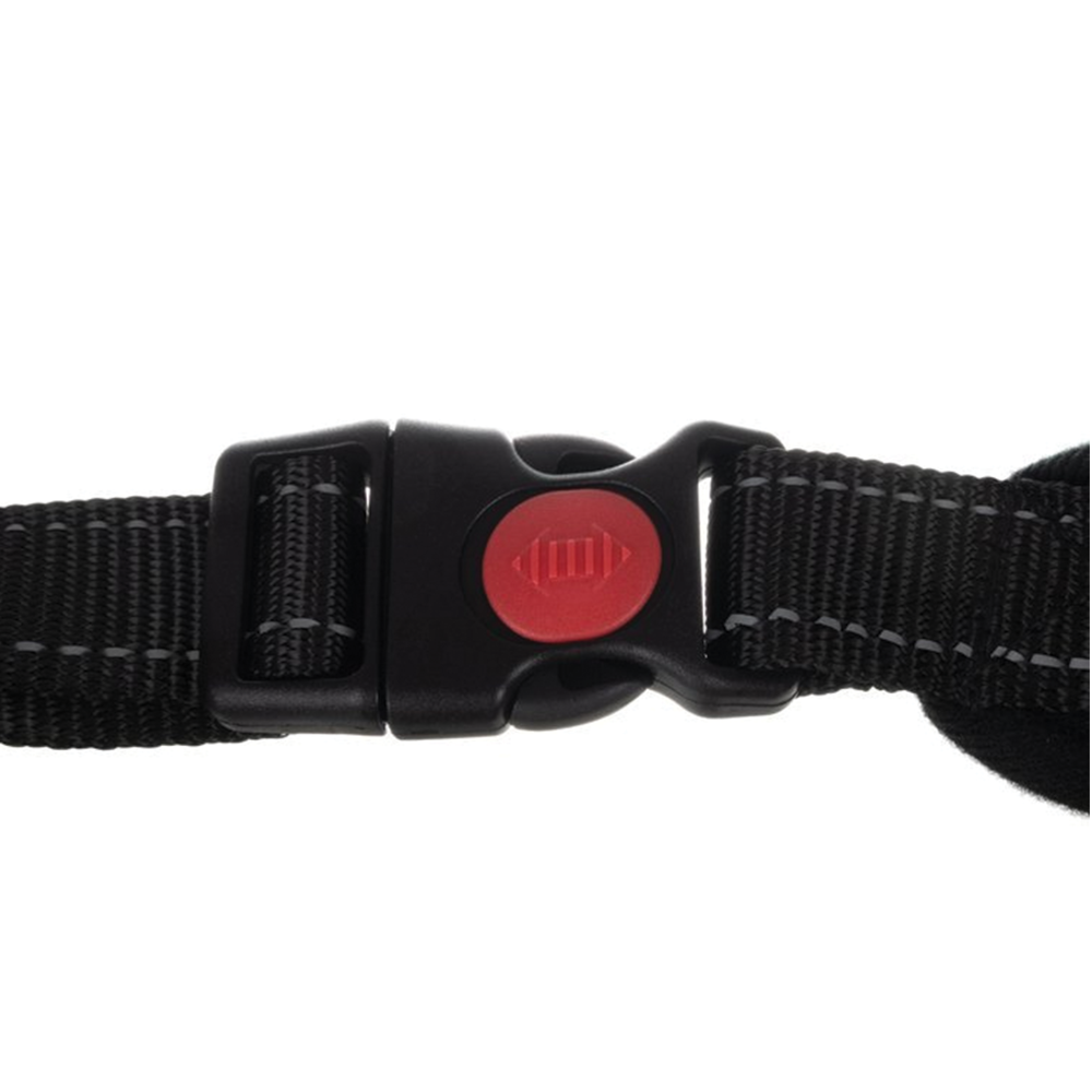 Postroj pro psa vel. L, černý představuje komfortní a bezpečnou alternativu ke klasickému obojku. Je navržen tak, aby rovnoměrně rozkládal tlak po těle psa a nijak nestlačoval krk ani hrudník, což výrazně zvyšuje pohodlí při chůzi, běhu i delších procházkách. Vyroben je z kvalitních a odolných materiálů - kombinace polyesteru, bavlněné výplně a pevných plastových i kovových prvků zajišťuje dlouhou životnost i při intenzivním používání. Postroj je pevný, ale zároveň měkký a příjemný na dotek, takže se pes cítí pohodlně i při celodenním nošení. Díky snadnému nastavení lze rychle upravit obvod krku i hrudníku podle velikosti psa. Postroj je vybaven pevným háčkem na připnutí vodítka a praktickou přídavnou rukojetí na horní straně, která usnadňuje kontrolu psa v rušných situacích nebo při nastupování do auta. Reflexní prvky výrazně zvyšují bezpečnost při večerních a ranních procházkách, kdy je pes lépe viditelný pro okolí i projíždějící vozidla.