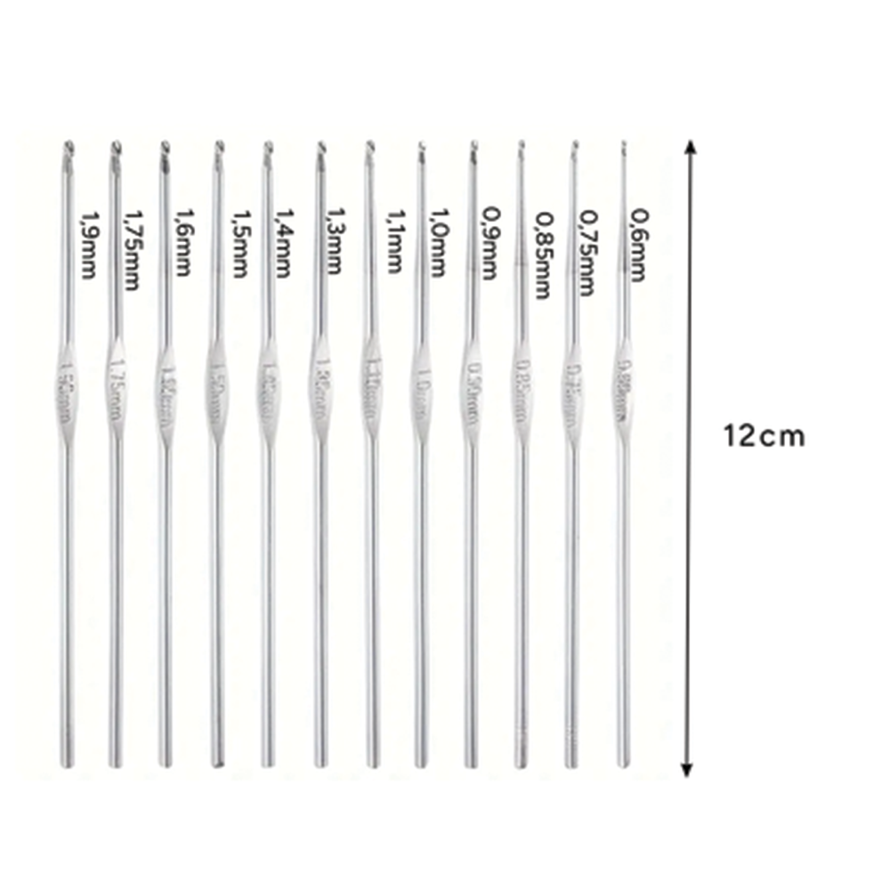 21 háčkovaných sloupků (0,6–6,0 mm)