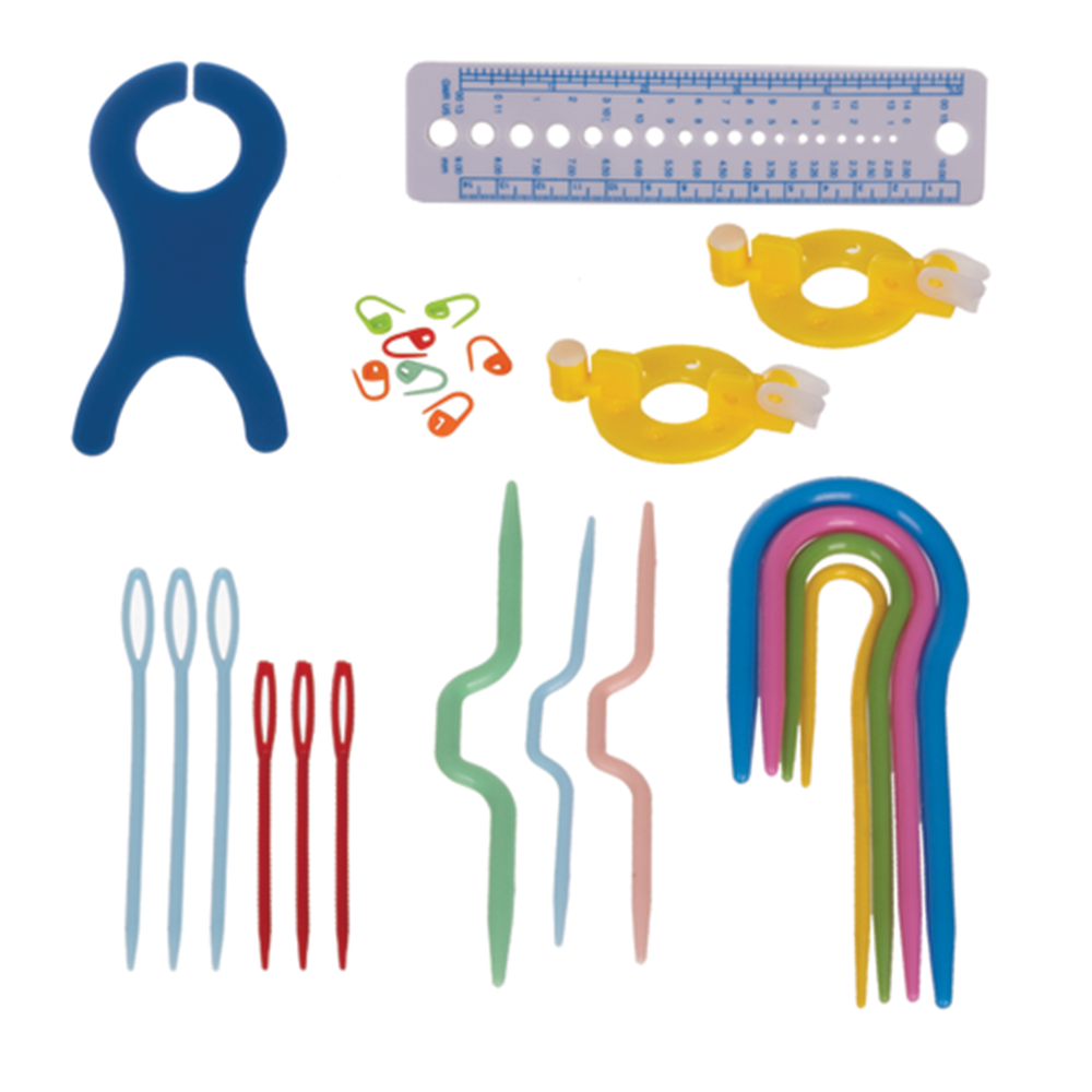 Univerzální sada XXL obsahuje 58 kusů příslušenství, které vám umožní realizovat širokou škálu háčkovacích projektů – od jemných krajek až po husté tkaniny. V balení najdete 21 háčků o velikostech 0,6–6,0 mm, přízi, jehly, držáky na očka, pomůcky na výrobu bambulek a další užitečné doplňky. Vše je přehledně uspořádáno v praktickém pouzdře s přihrádkami, které zajišťuje pořádek a snadné přenášení.