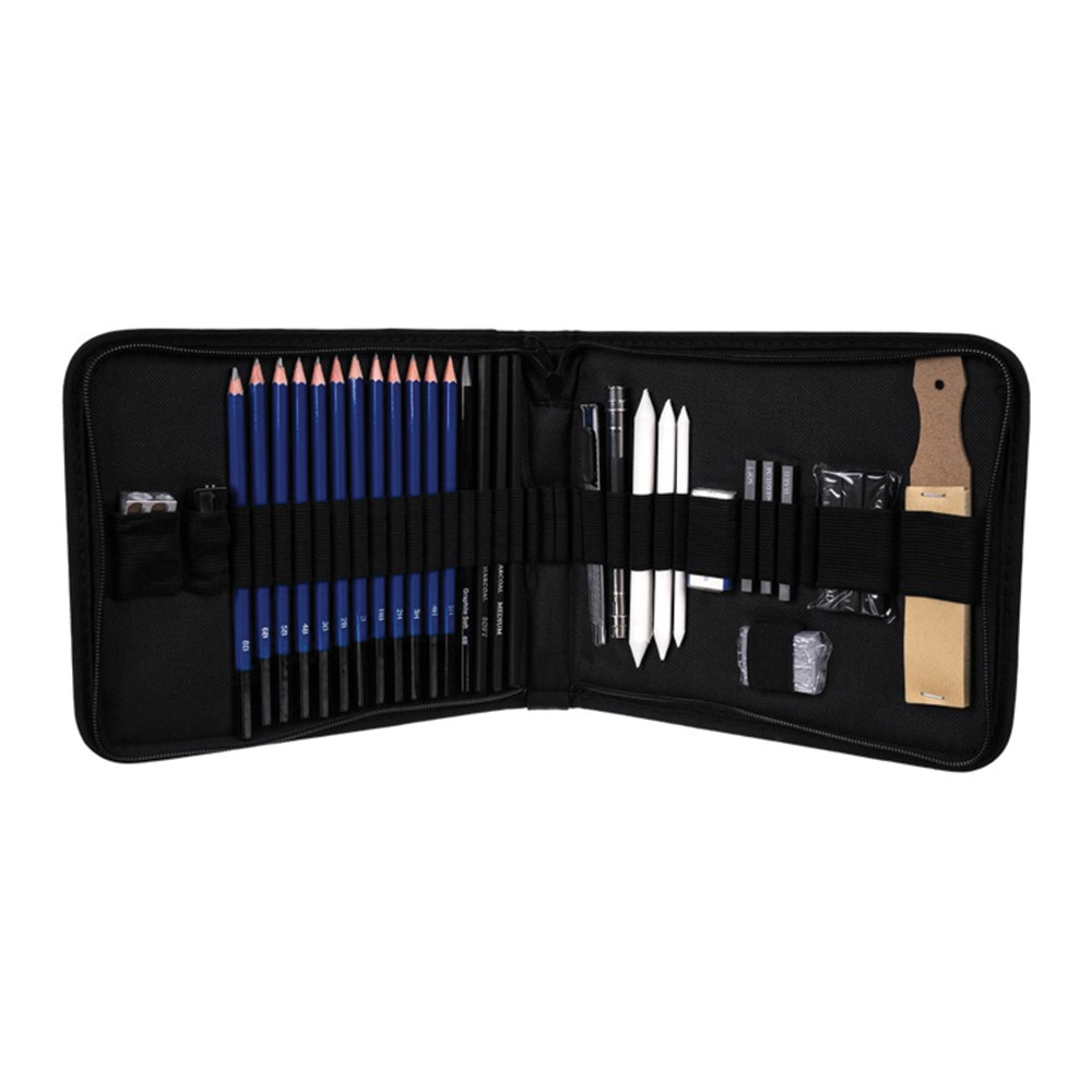 Profesionální vybavení v jednom setu: Tato 32dílná sada nabízí vše potřebné pro skicování, stínování a detailní kresbu. Díky široké škále tužek různých tvrdostí, uhlů a grafitů umožňuje umělcům plynule přecházet od jemných linií až po hluboké, dramatické stíny, což je základem každého kvalitního díla.