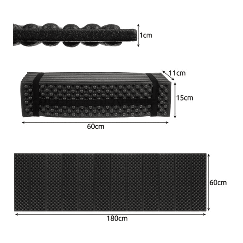 Skládací karimatka na spaní je praktickým doplňkem pro všechny outdoorové aktivity i běžné použití doma. Dokonale vyrovnává nerovnosti terénu a vytváří komfortní povrch pro ležení nebo sezení. Vysoce kvalitní EVA pěna s tvarovanými výstupky zajišťuje lepší měkkost, zvýšenou pevnost a vynikající tepelně izolační vlastnosti. Karimatka účinně chrání před chladem a vlhkostí, což ji činí ideální pro stanování, pikniky nebo přespání v přírodě. Voděodolné provedení zvyšuje její odolnost vůči nepříznivým povětrnostním podmínkám a dlouhodobému používání.