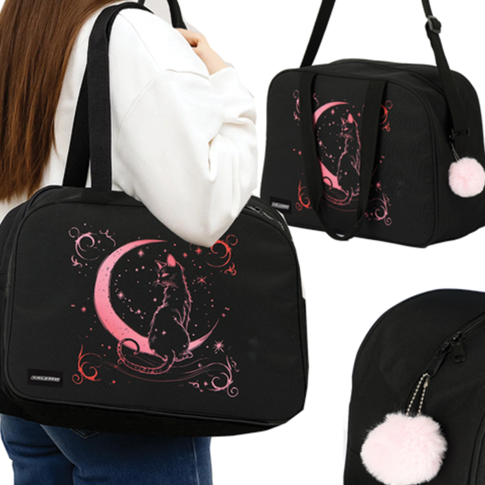 Školní taška 13 l – černá s růžovým potiskem je ideálním společníkem pro každodenní nošení do školy, na trénink, výlety i volnočasové aktivity. Díky praktickému objemu 13 litrů nabízí dostatek místa pro sešity, knihy, láhev na pití nebo sportovní vybavení, přičemž si zachovává kompaktní a moderní design. Taška je vyrobena z odolné polyesterové tkaniny, která je pevná, lehká a snadno se čistí. Jedna hlavní přihrádka se zipem chrání obsah před vysypáním a vlhkostí. Díky nastavitelnému ramennímu popruhu lze tašku přizpůsobit výšce i pohodlí uživatele. Kromě toho má i praktická horní ucha pro snadné přenášení v ruce. Součástí je i růžový přívěsek na klíče, který doplňuje stylový potisk a dodává tašce osobitý vzhled. Skvělá volba pro studenty i teenagery, kteří hledají spojení funkčnosti, odolnosti a designu.