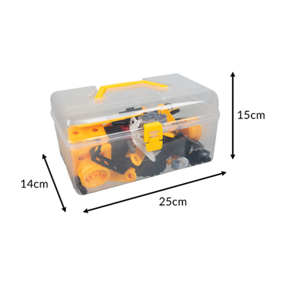 Komplexní inženýrská sada pro děti: Se 100 různorodými díly má malý konstruktér k dispozici vše potřebné pro stavbu aut, strojů i abstraktních 3D modelů. Přítomnost funkčních šroubků a ozubených kol zaručuje, že hračka děti jen tak neomrzí a nabízí nekonečné možnosti tvoření.