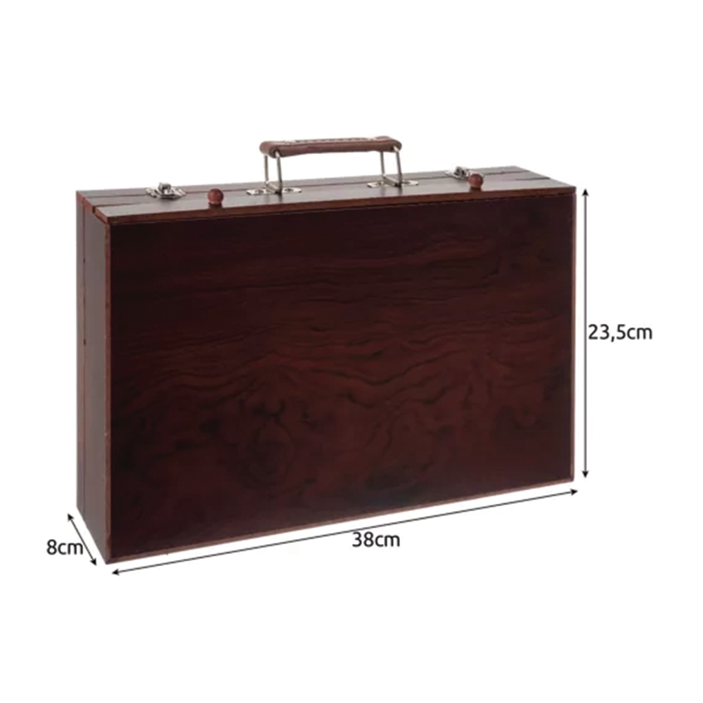 Elegance z přírodního dřeva: Luxusní dřevěný kufr se zásuvkou vyniká precizním zpracováním a odolností. Přírodní materiál je příjemný na dotek a dodává celé sadě profesionální vzhled, který vkusně doplní interiér každého dětského pokoje či ateliéru.